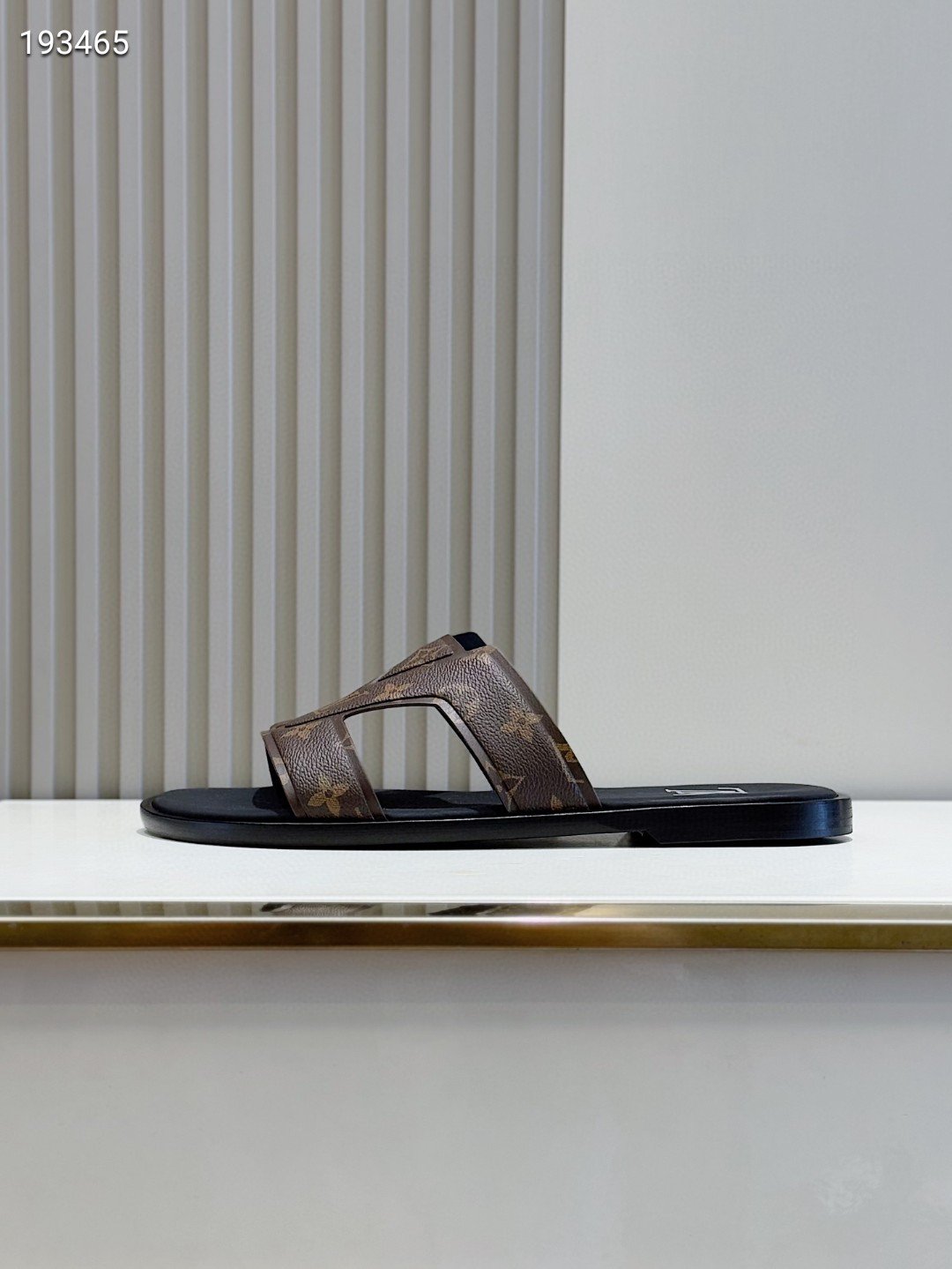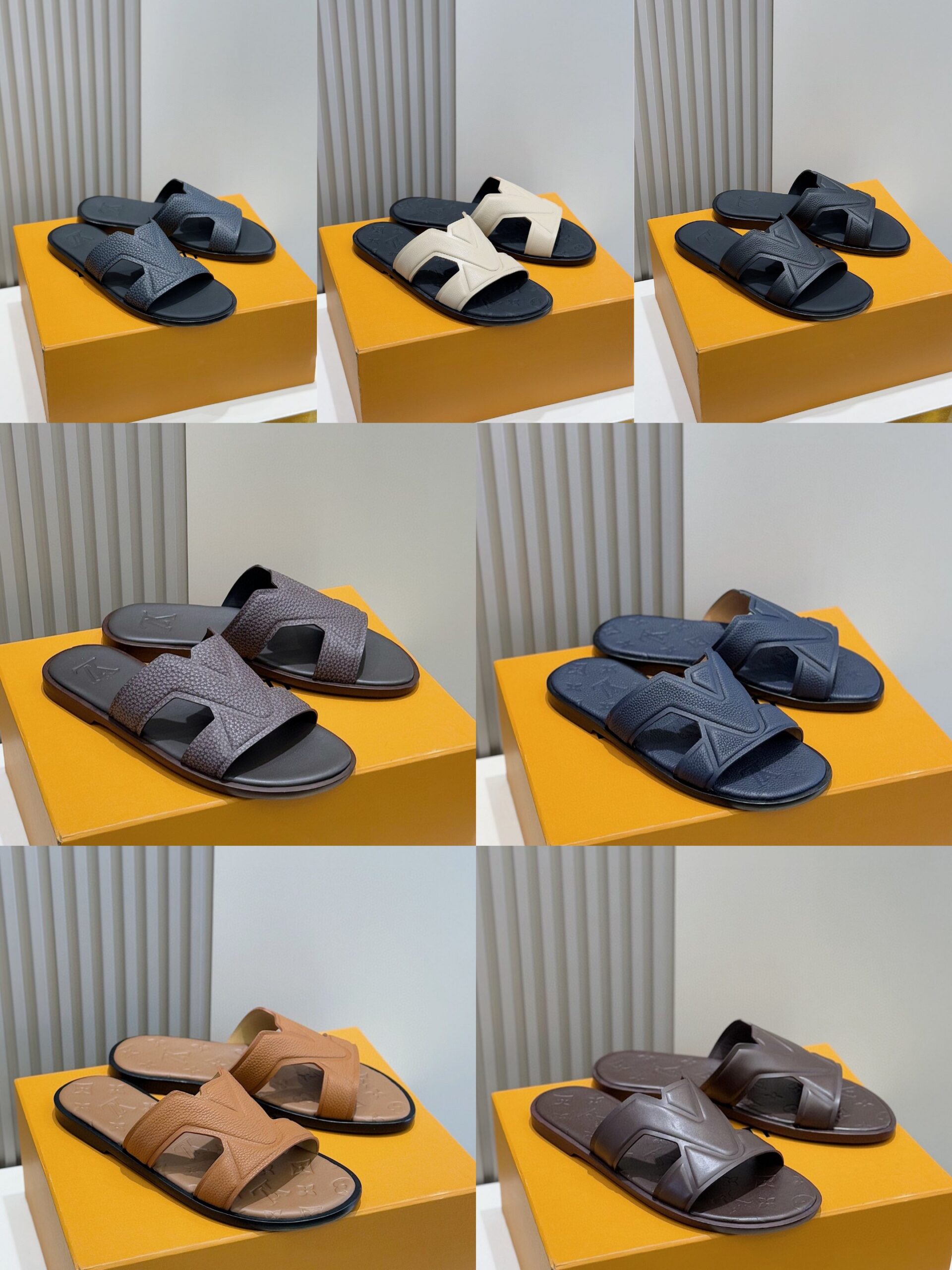 LV Oasis sandal/Slipper is made of Monogram denim and imported cowhide embossing. The overlapping straps on the upper present the brand letters, and the combination of soft rubber and genuine leather outsole creates a comfortable summer experience.